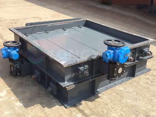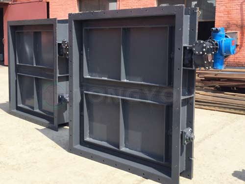 煙氣擋板門通常采用百葉窗式擋板門。擋板門按照其葉片形式可以分為單軸單擋板、單軸雙擋板、雙軸單擋板、雙軸雙擋板。