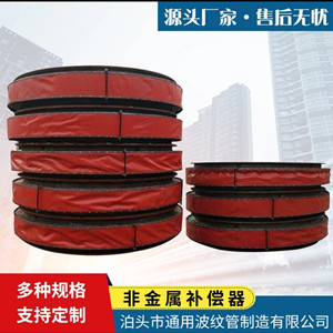 非金屬補償器又稱(非金屬柔性補償器、非金屬膨脹節、非金屬柔性織物補償器)可補償軸向橫向、角向,具有無推力、簡化支座設計、、、消聲減震等特點,特別適用于熱風管道、煙塵管道及風機設備等。