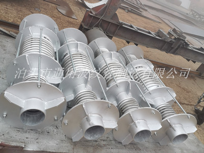 直管壓力平衡式波紋補償器由位于兩端的兩個工作波紋管和位于中間的一個平衡波紋管及拉桿和端板等結構件組成,如需補償軸向和橫向位移時,拉桿兩端應增設球面、錐面墊圈。